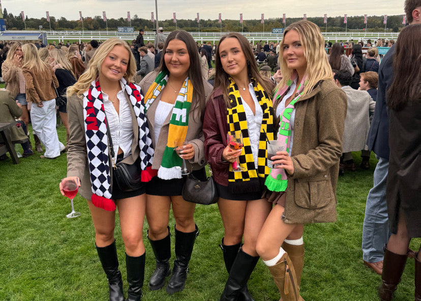 Embodying the thrill and tradition of horse racing, our handcrafted scarves combine sophistication with sporting spirit. Each piece is inspired by the iconic colours and energy of the racecourse, reimagined in timeless knitwear